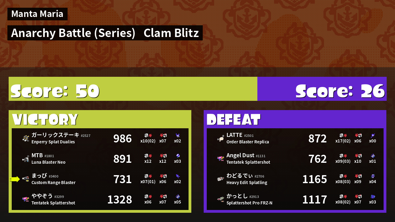 | Mode | Clam Blitz - Anarchy Battle (Series) |
