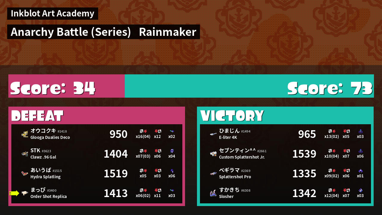 | Mode | Rainmaker - Anarchy Battle (Series) |