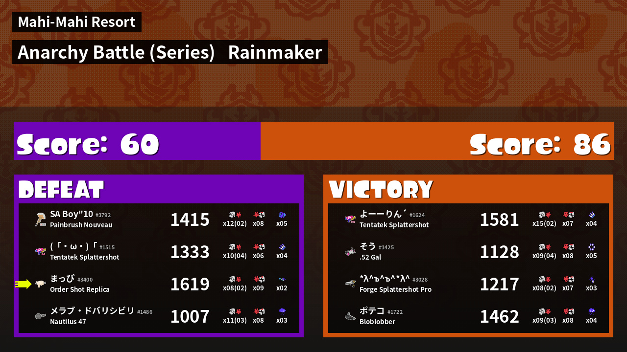 | Mode | Rainmaker - Anarchy Battle (Series) |