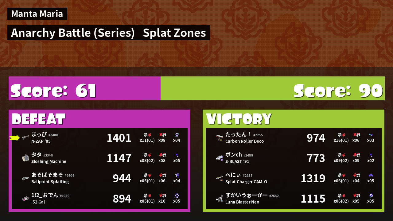 | Mode | Splat Zones - Anarchy Battle (Series) |