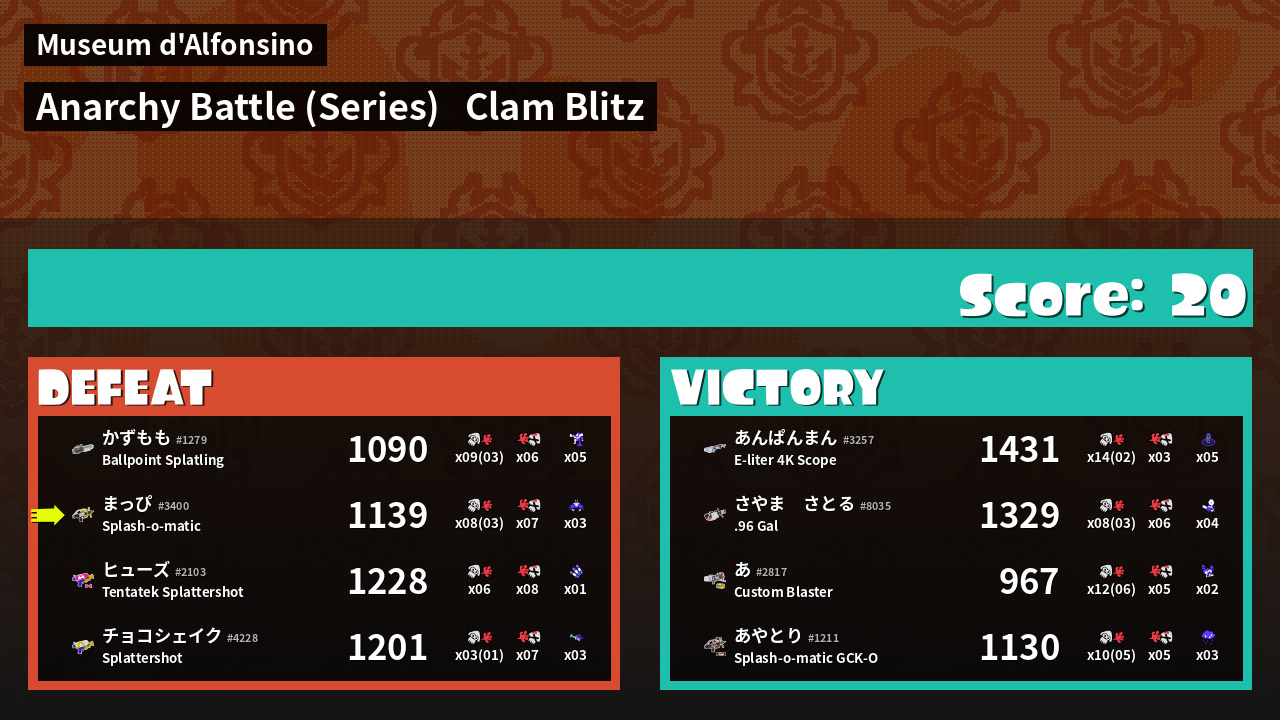 | Mode | Clam Blitz - Anarchy Battle (Series) |