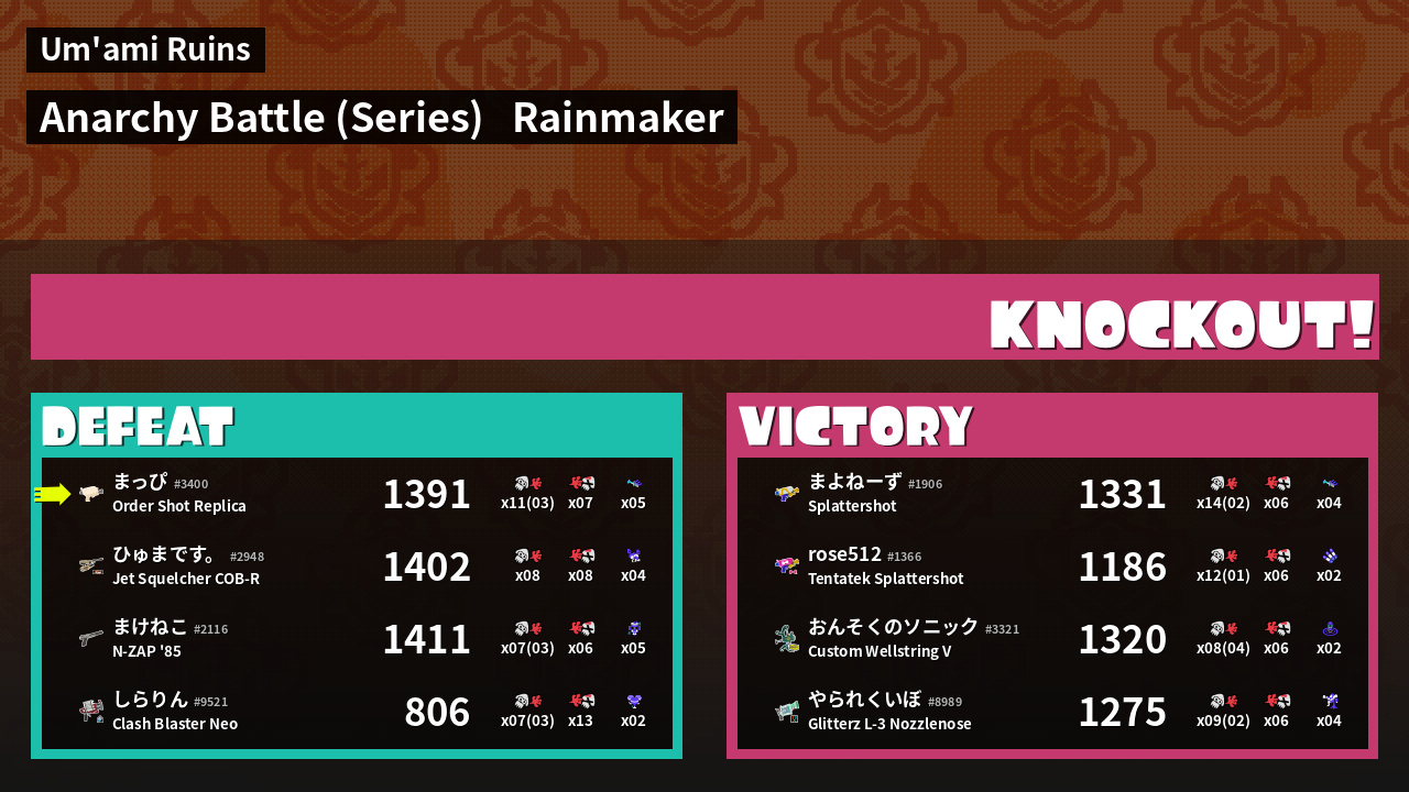 Results of まっぴ's Battle