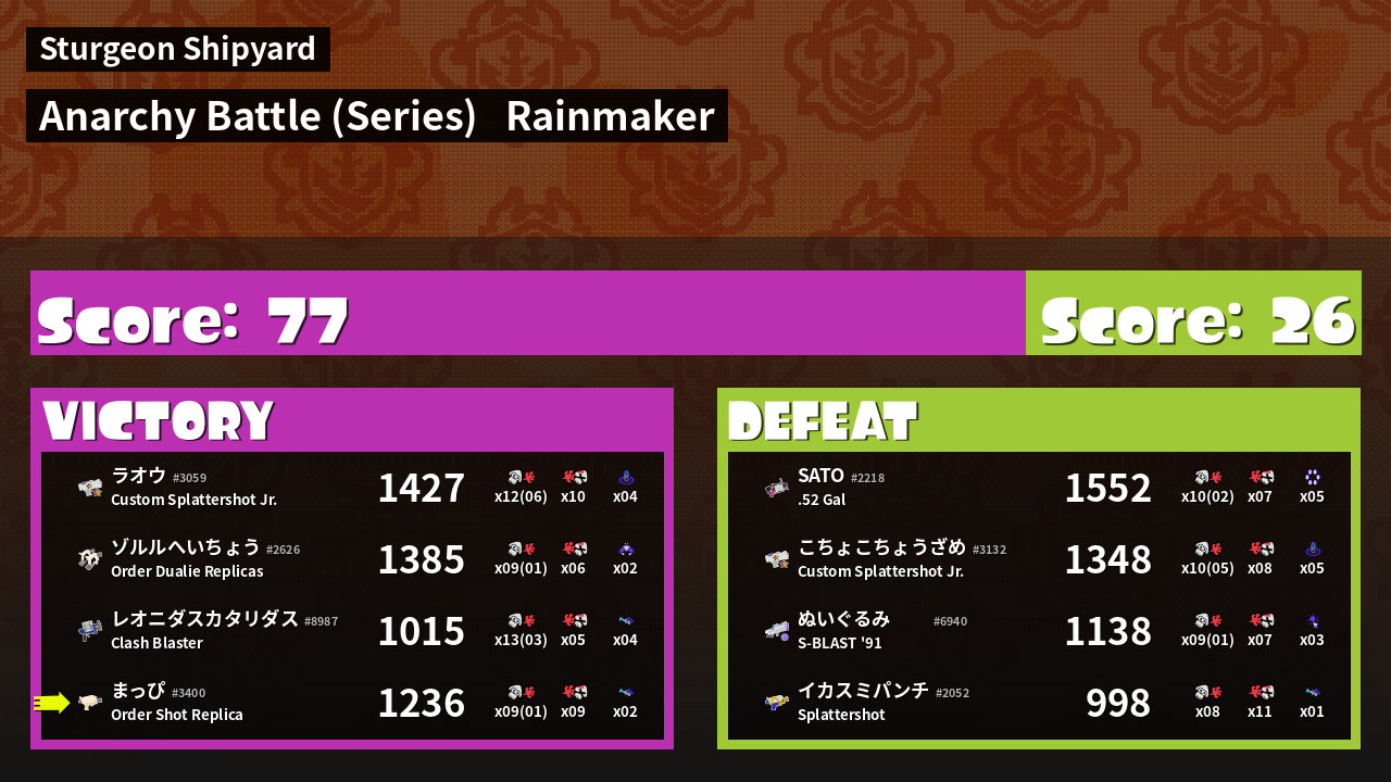 | Mode | Rainmaker - Anarchy Battle (Series) |
