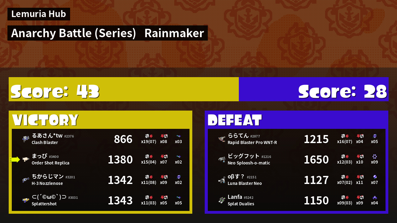Results of まっぴ's Battle