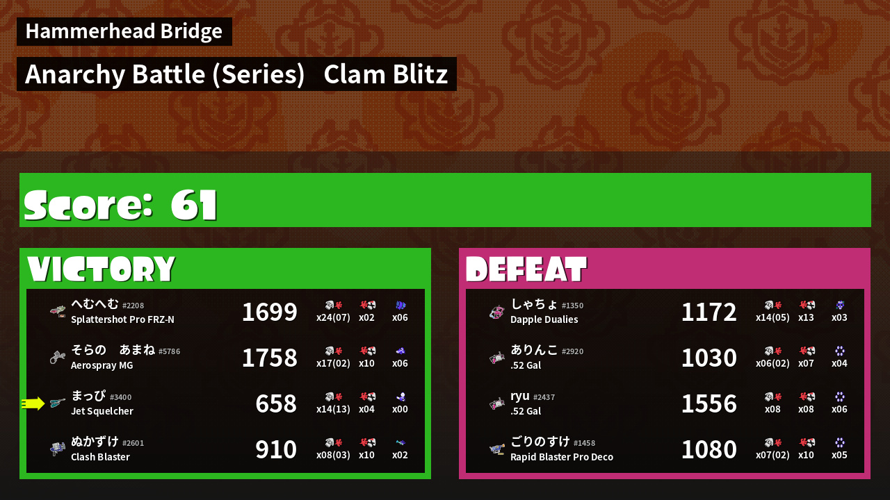 | Mode | Clam Blitz - Anarchy Battle (Series) |