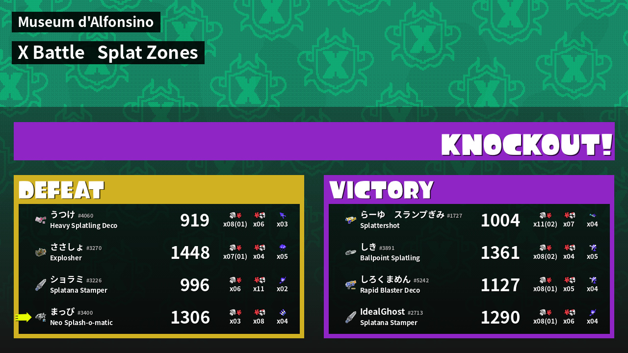 | Mode | Splat Zones - X Battle |