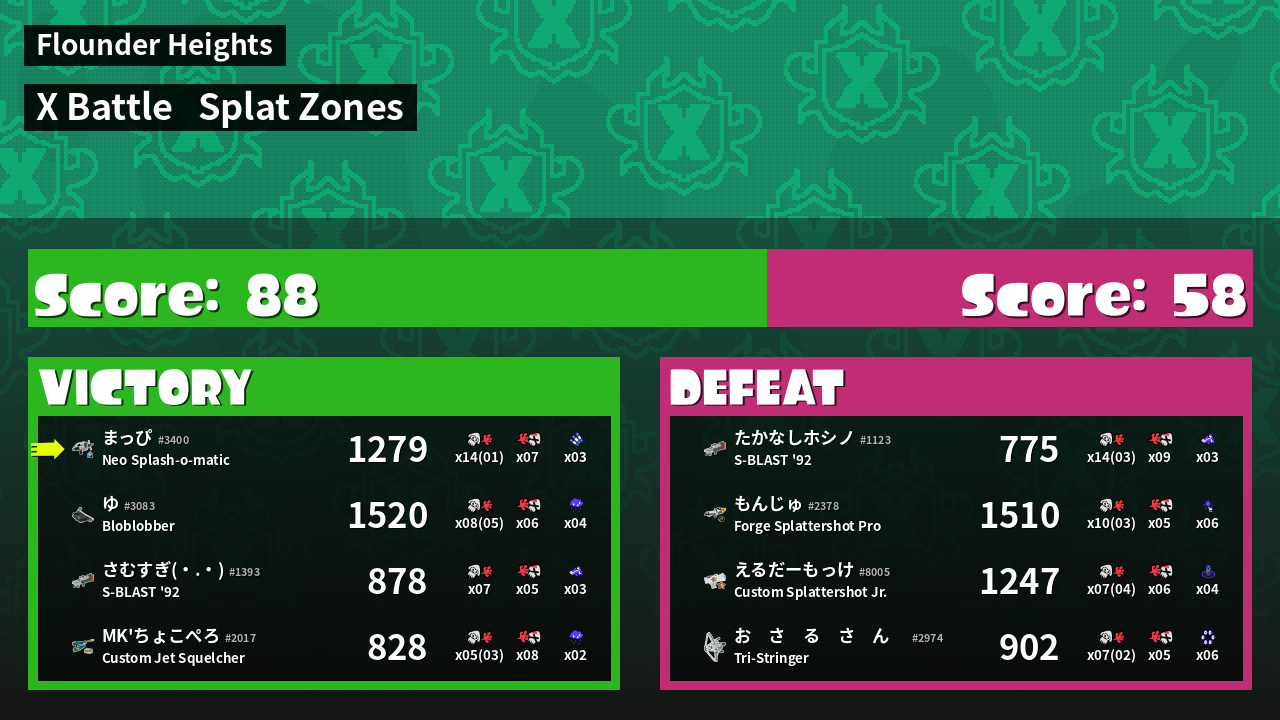 | Medals | #1 Overall Splatter #1 Splat Zone Guard #1 Popular Target |