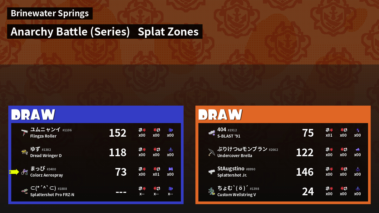 | Mode | Splat Zones - Anarchy Battle (Series) |
