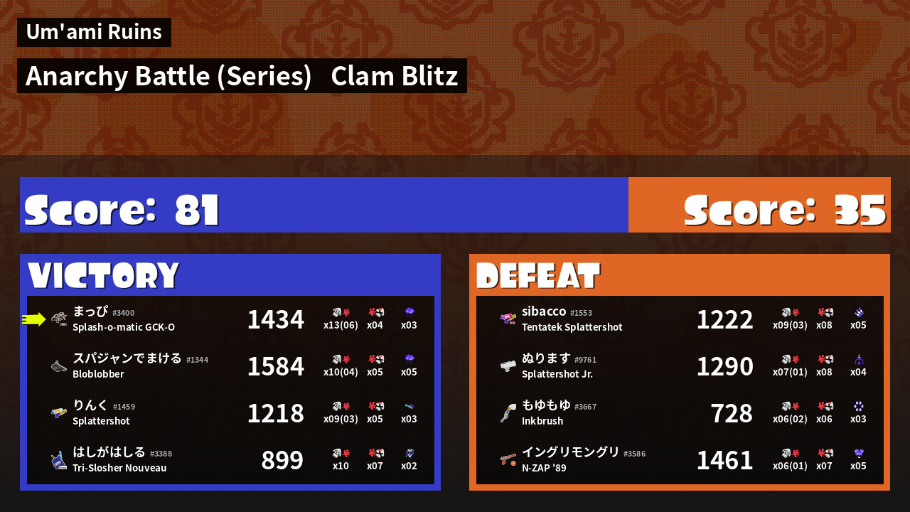 | Mode | Clam Blitz - Anarchy Battle (Series) |