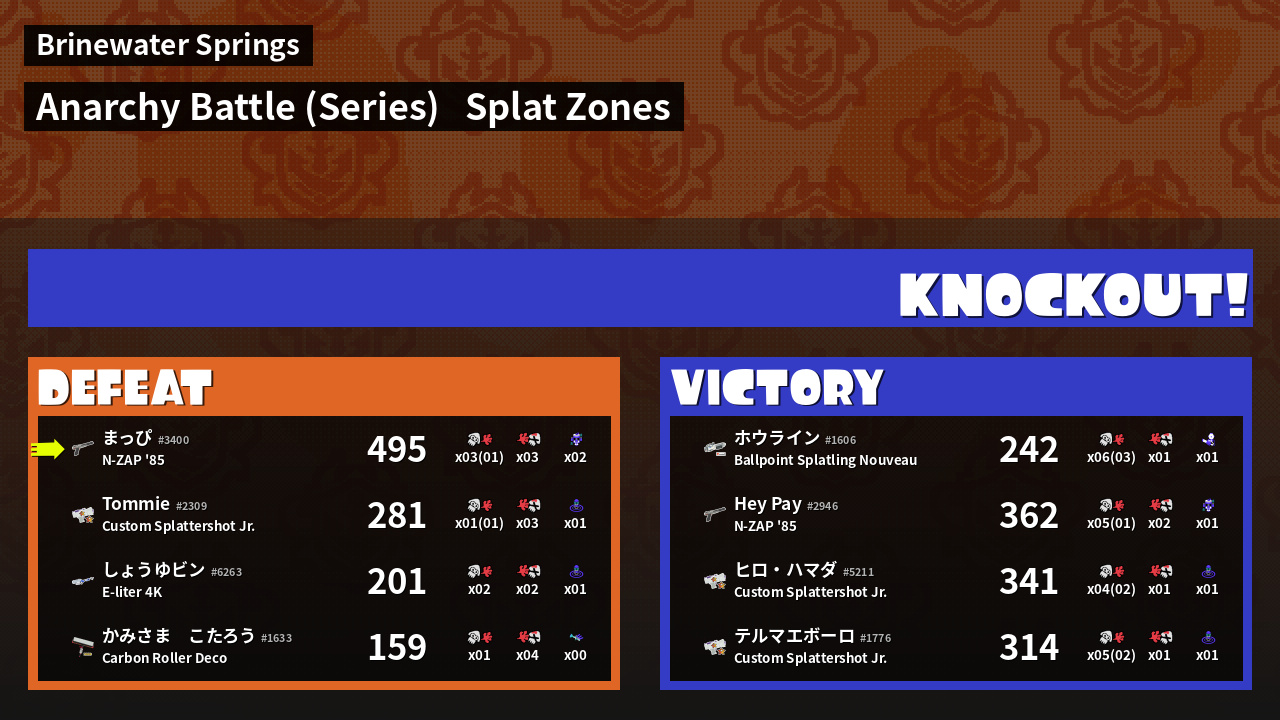 | Mode | Splat Zones - Anarchy Battle (Series) |