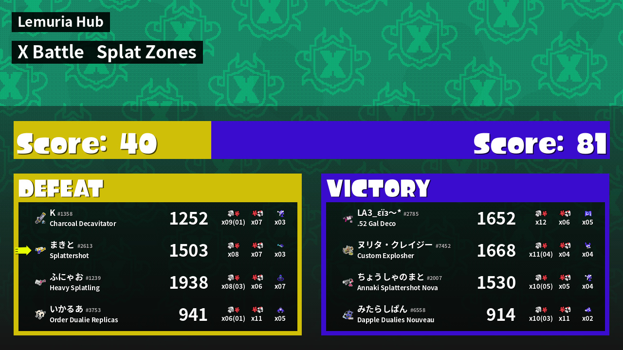 | Medals | #1 Splat Zone Inker #1 Splat Zone Guard #1 Enemy Splatter | ||