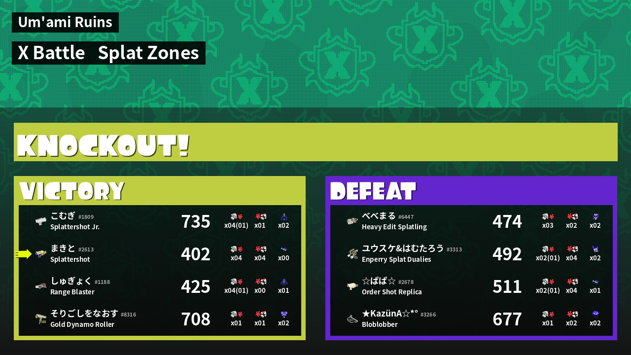 | Medals | #1 Overall Splatter #1 Splat Zone Guard #1 Popular Target | ||