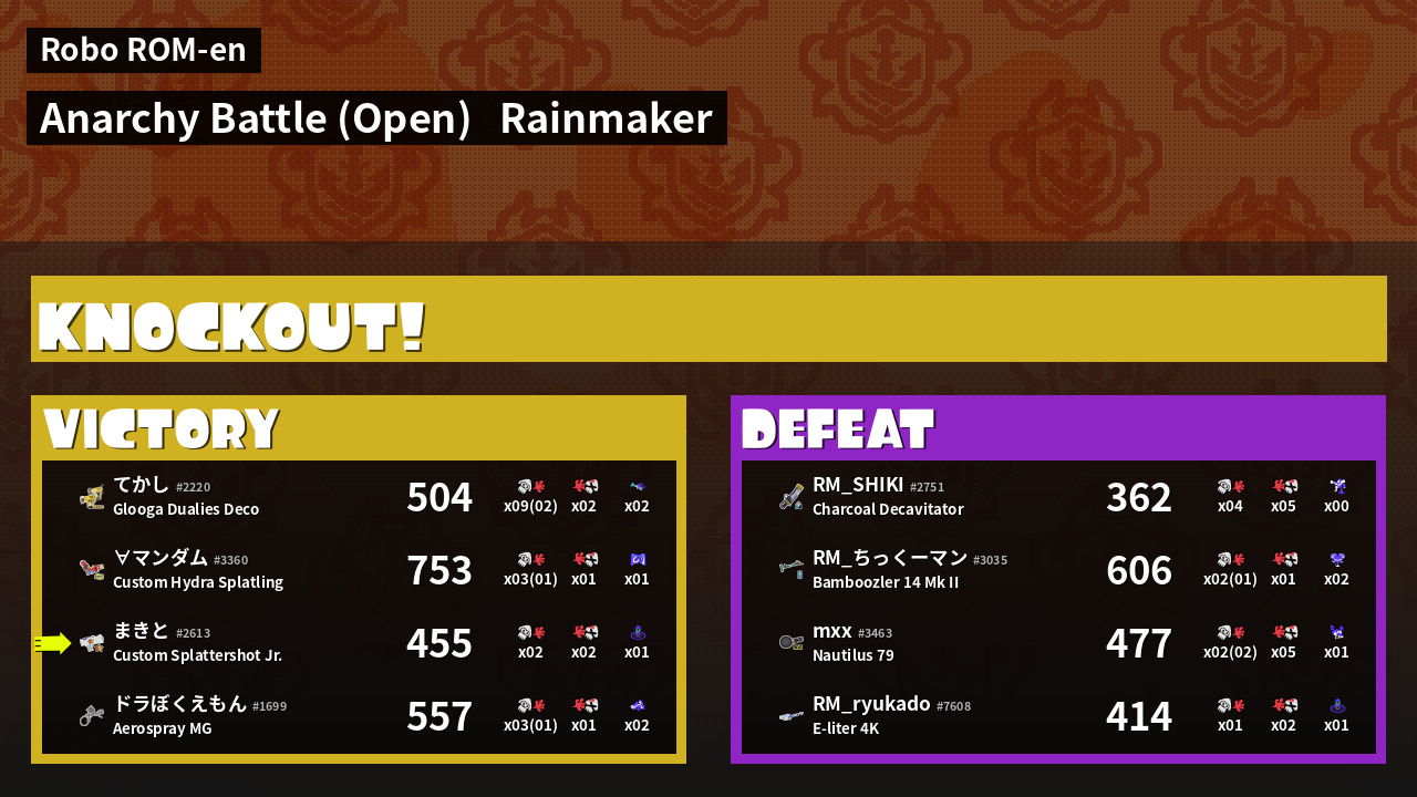| Mode | Rainmaker - Anarchy Battle (Open) | ||