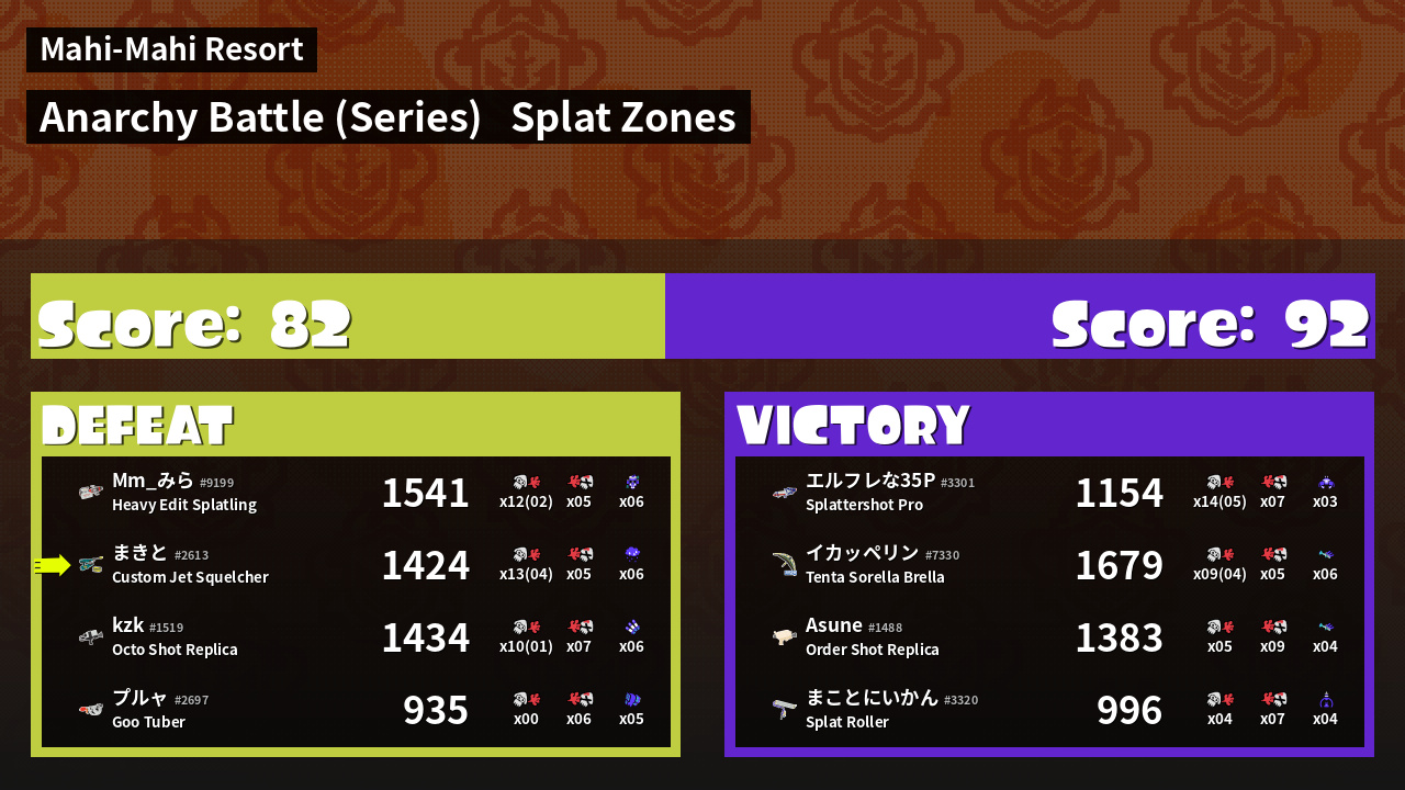 | Mode | Splat Zones - Anarchy Battle (Series) | ||