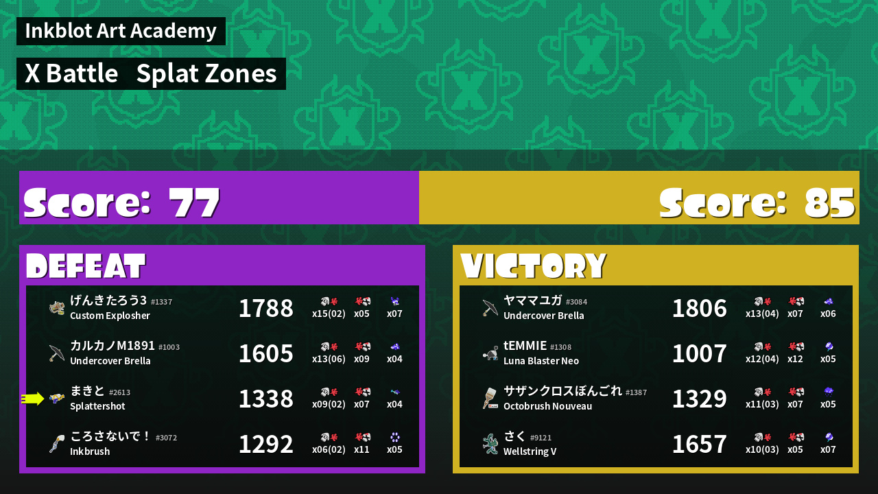 | Medals | #1 Trizooka User #2 Enemy Splatter #2 Splat Assister | ||