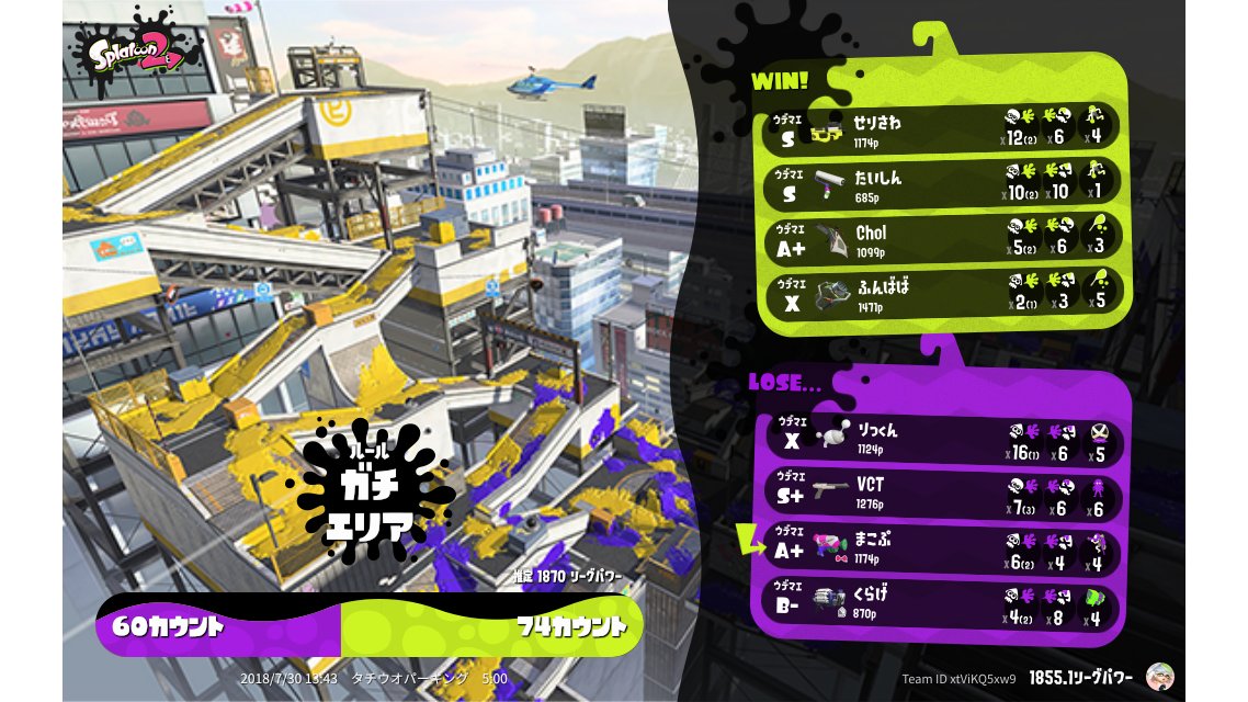 | Mode | Splat Zones - League Battle (Quad) | ||||||||||||||||||||||||||||||||||
