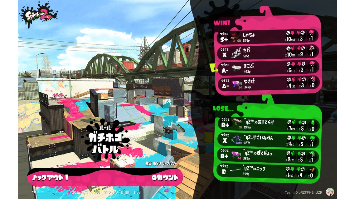 | Name | Weapon | Level | Rank | Inked | k+a/sp | k/d |