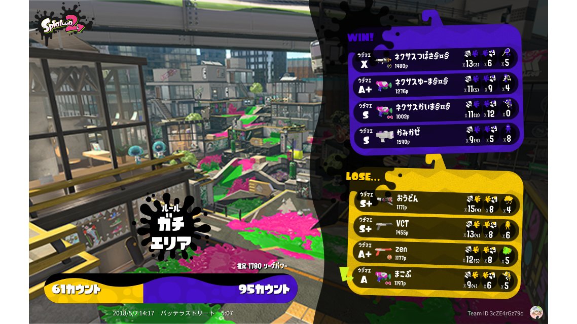 | Mode | Splat Zones - League Battle (Quad) | ||||||||||||||||||||||||||||||||||
