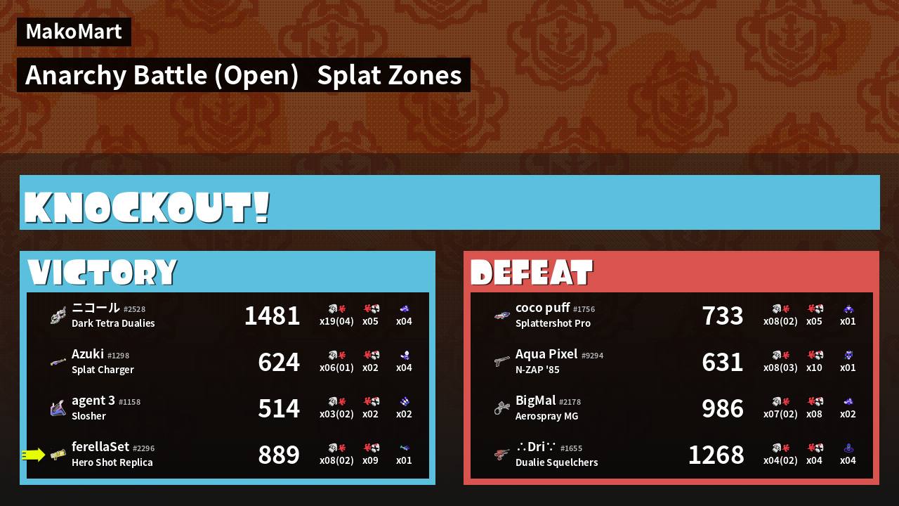 | Mode | Splat Zones - Anarchy Battle (Open) | ||