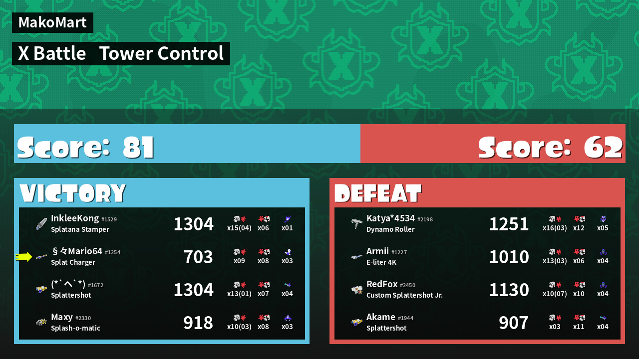 | Weapon | Splat Charger ( Splat Bomb / Ink Vac) | ||