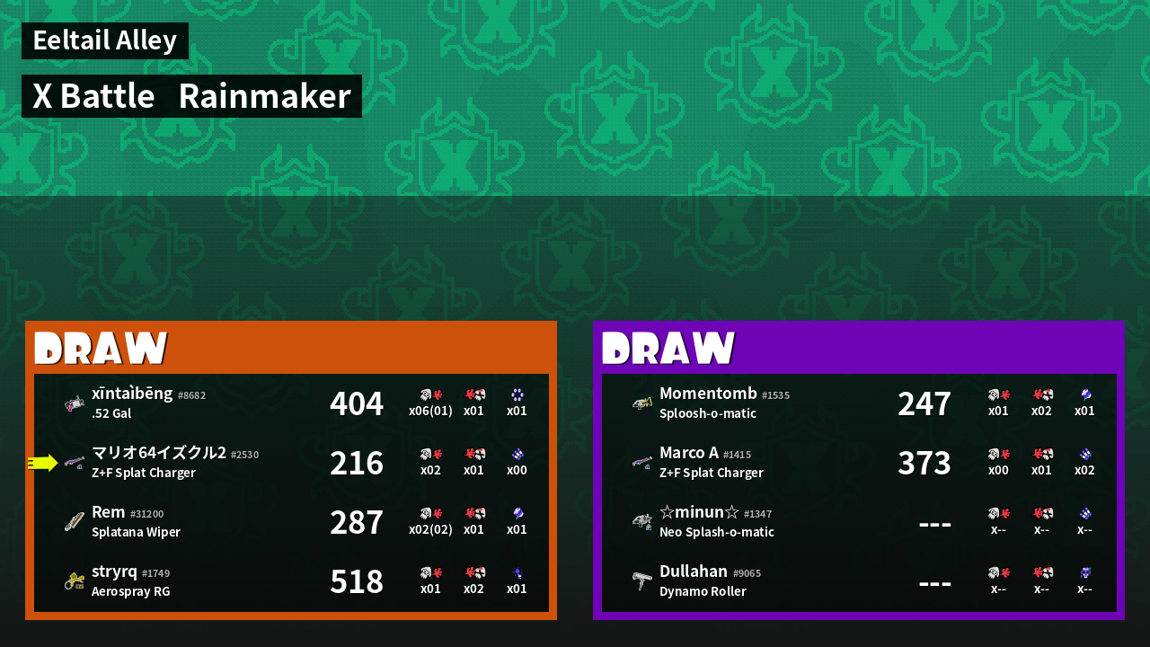 | Mode | Rainmaker - X Battle | ||