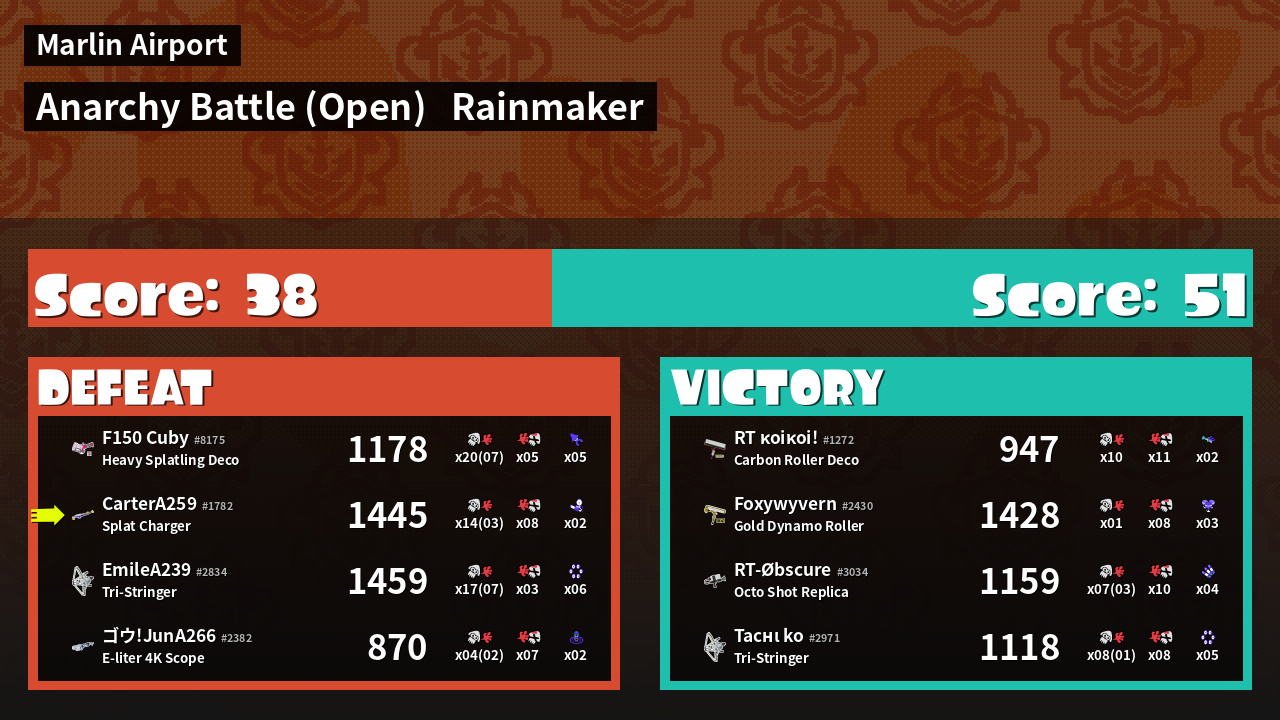 | Mode | Rainmaker - Anarchy Battle (Open) | ||