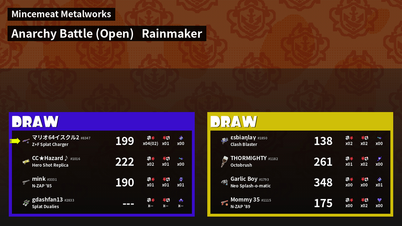 | Mode | Rainmaker - Anarchy Battle (Open) | ||