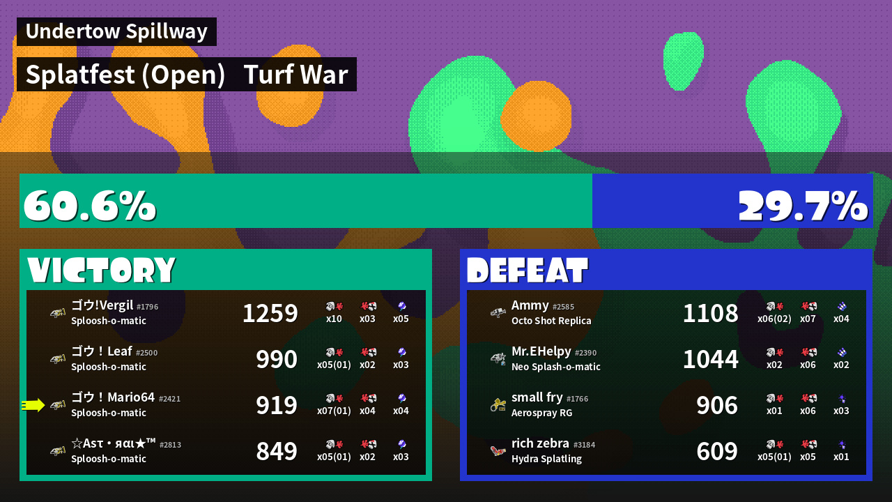 | Medals | #1 Splat Assister #1 Base Defender #2 Overall Splatter | ||