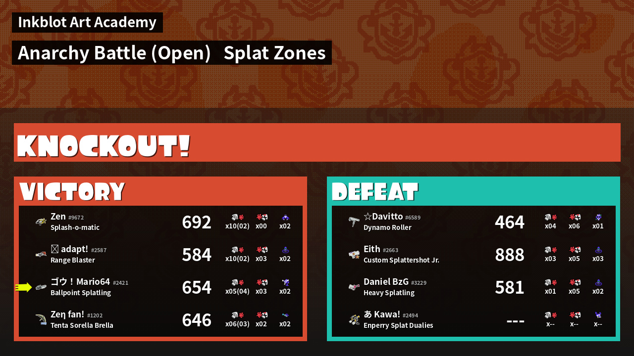 | Mode | Splat Zones - Anarchy Battle (Open) | ||