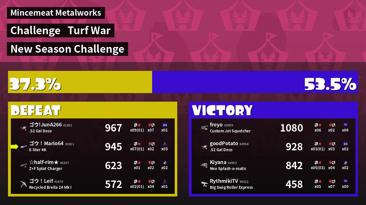 | Medals | #1 Enemy-Base Inker #1 Splat Assister #1 Base Defender | ||