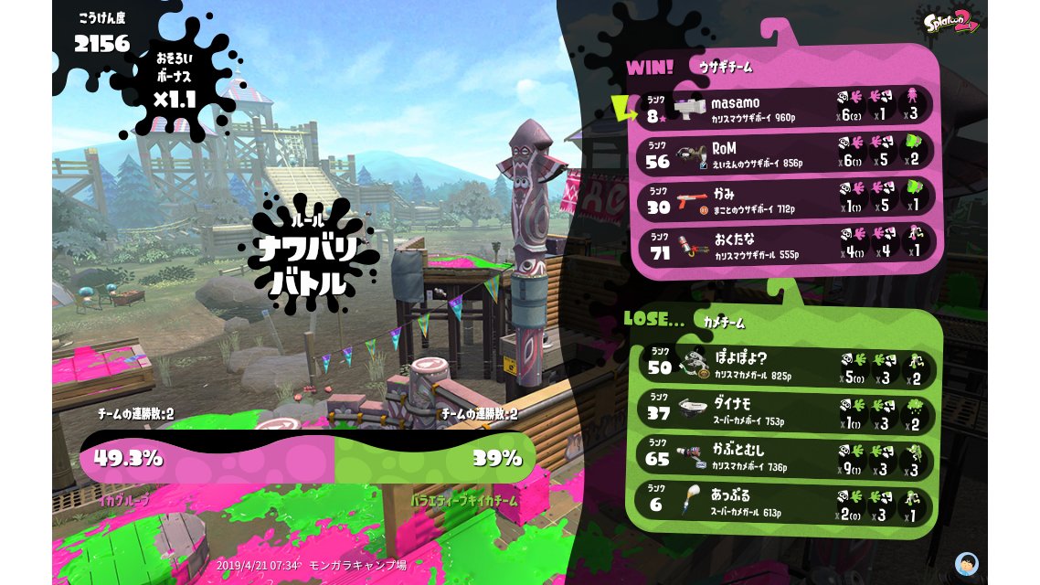 | Splatfest Title | ウサギ Champion 695 → ウサギ Champion 783 | ||||||||||||||||||||||||||||||||||