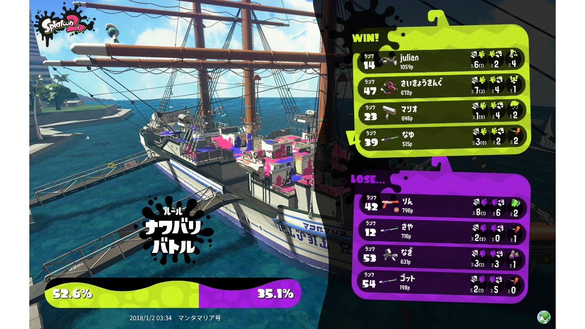 | Mode | Turf War - Regular Battle | ||||||||||||||||||||||||||||