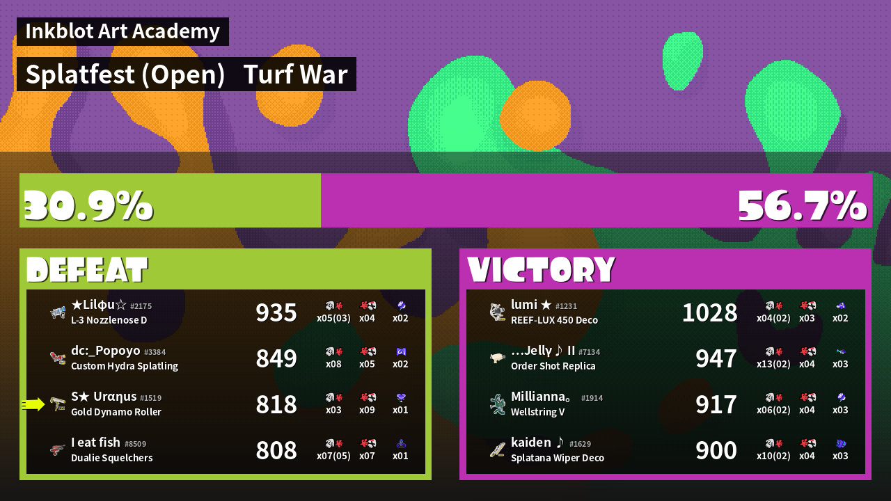 | Medals | #1 Enemy-Base Inker First Splat! #1 Super Chump User | ||