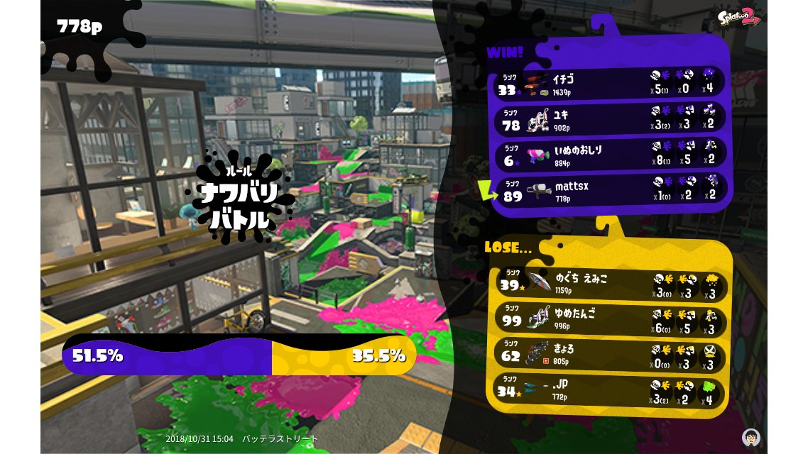 | Mode | Turf War - Regular Battle | |||||||||||||||||||||||||||||||||||||