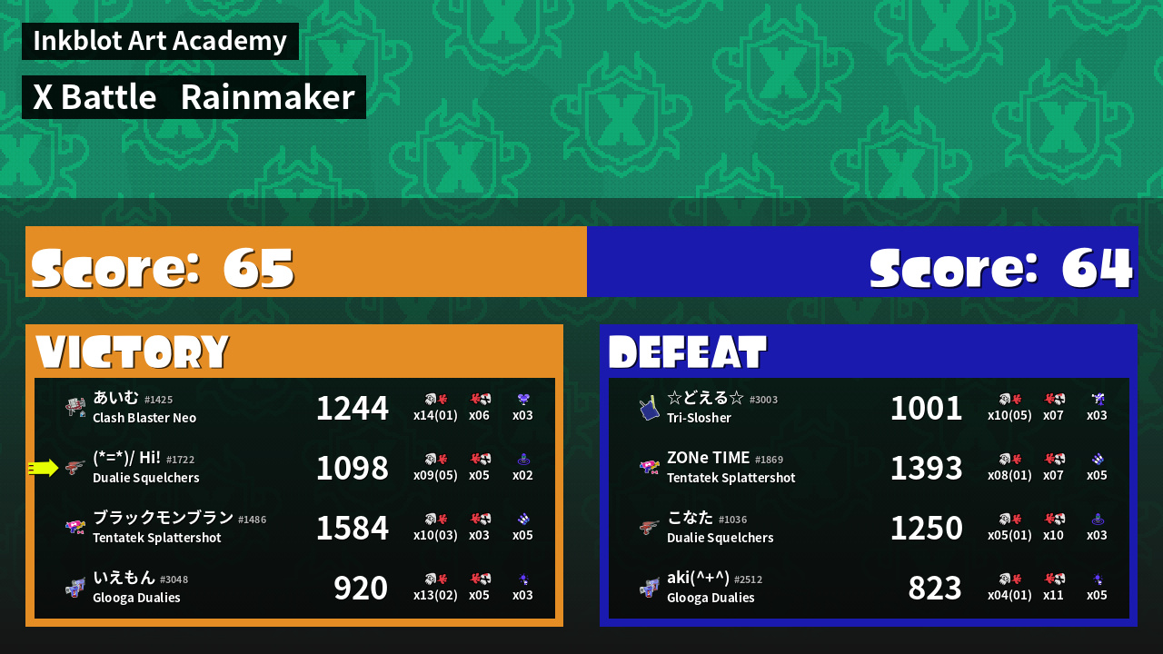 | Medals | #1 Score Booster #1 Popular Target #1 Splat Assister | ||