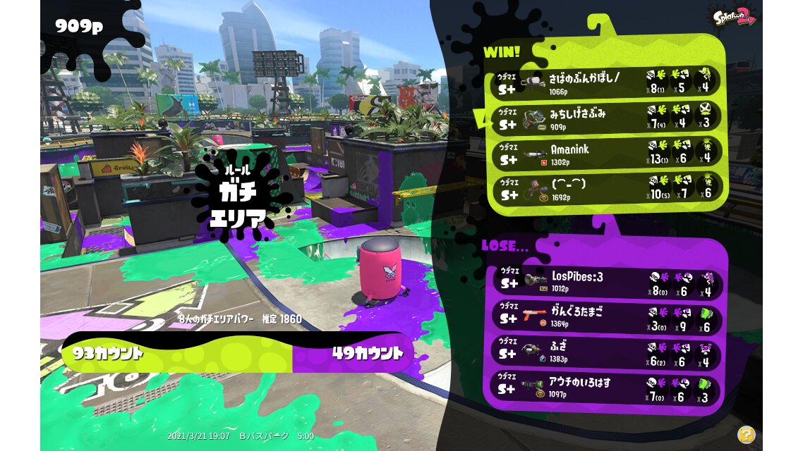 | Mode | Splat Zones - Ranked Battle | ||||||||||||||||