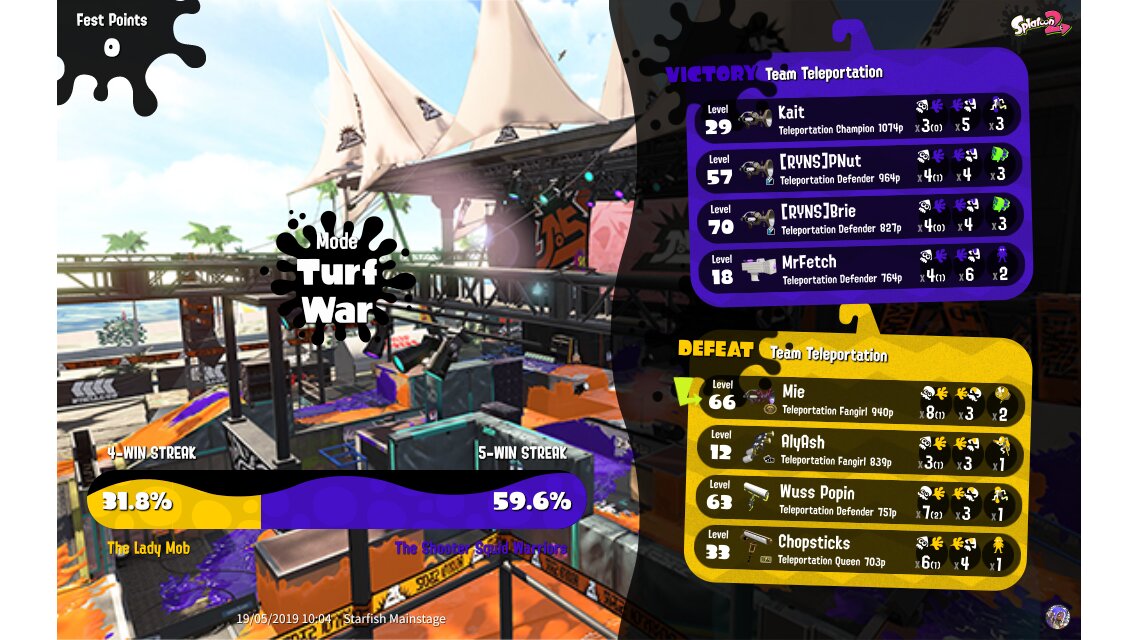 | My team's splatfest power | 1,740 | |||||||||||||||||||||||||||||||