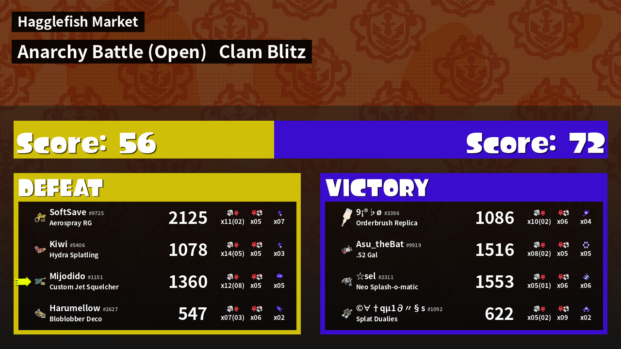 | Mode | Clam Blitz - Anarchy Battle (Open) | ||