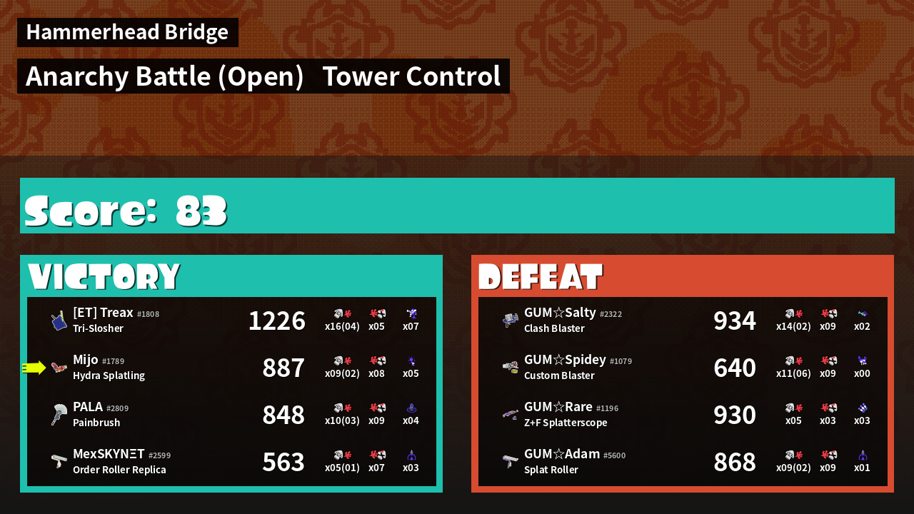 | Mode | Tower Control - Anarchy Battle (Open) | ||