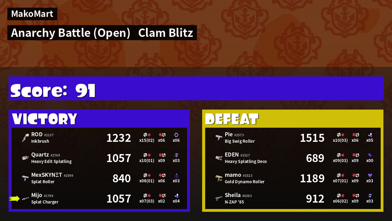 | Mode | Clam Blitz - Anarchy Battle (Open) | ||