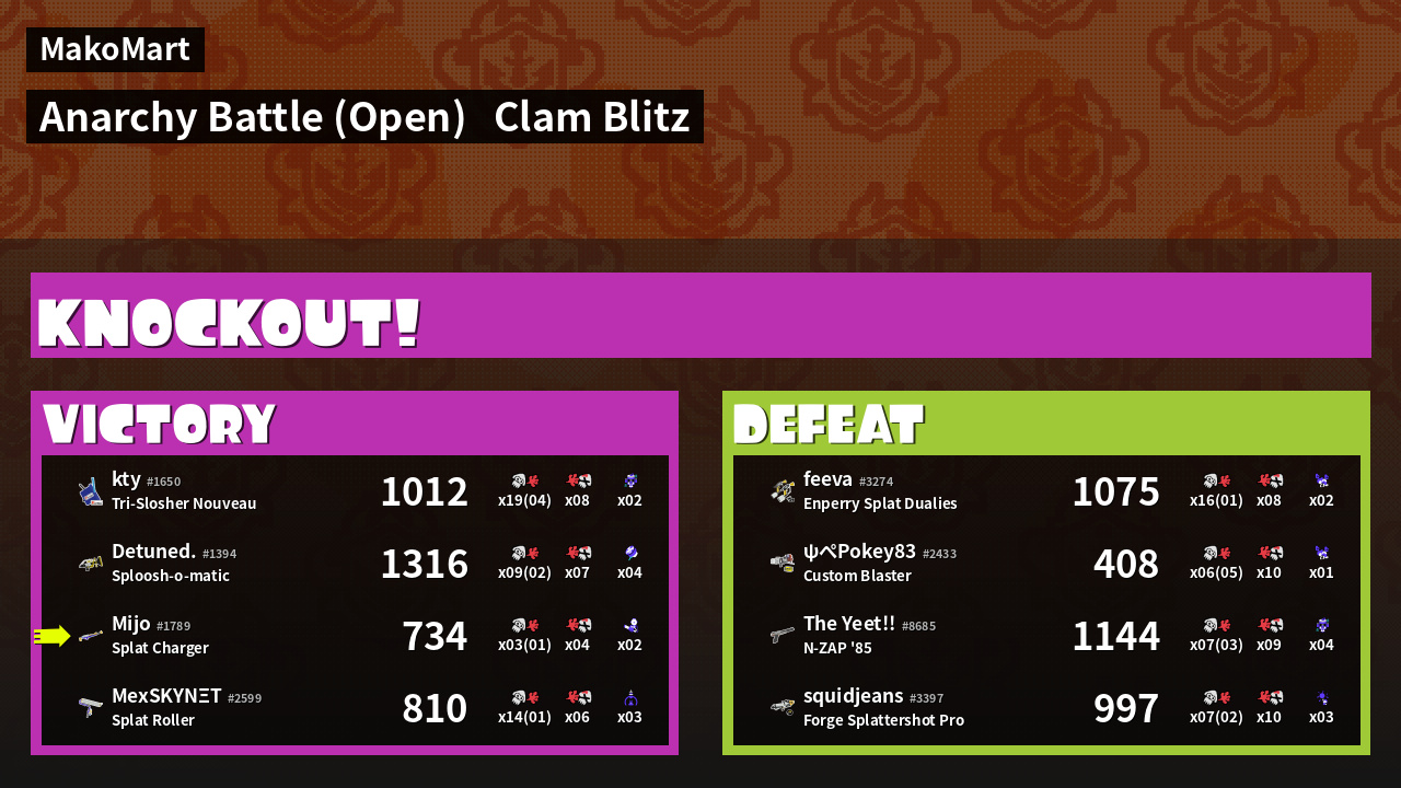 | Mode | Clam Blitz - Anarchy Battle (Open) | ||