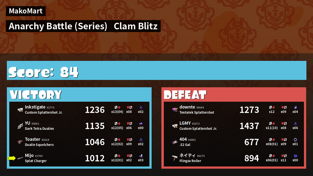 Kills / Deaths | 11 + 1 / 2 > Kill Ratio: 5.50 | ||
