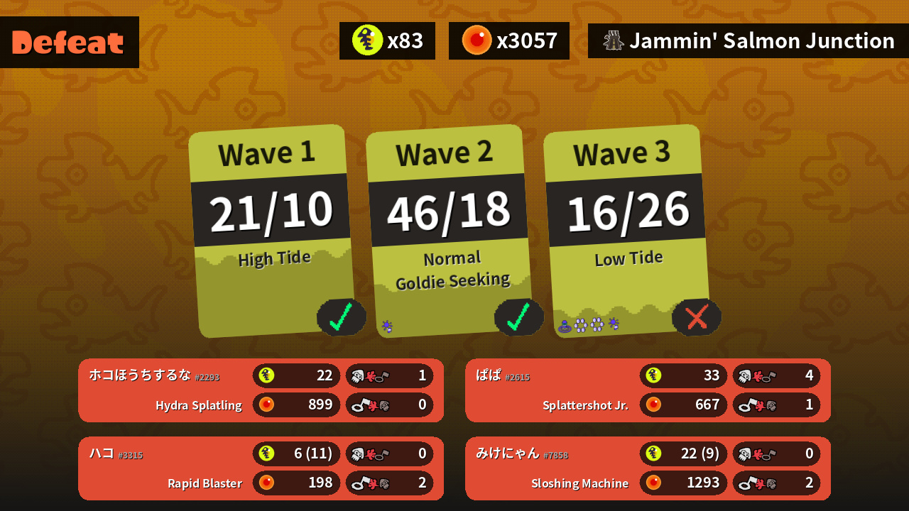 | Weapons | Hydra Splatling | Splattershot Jr. | Sloshing Machine | Rapid Blaster |