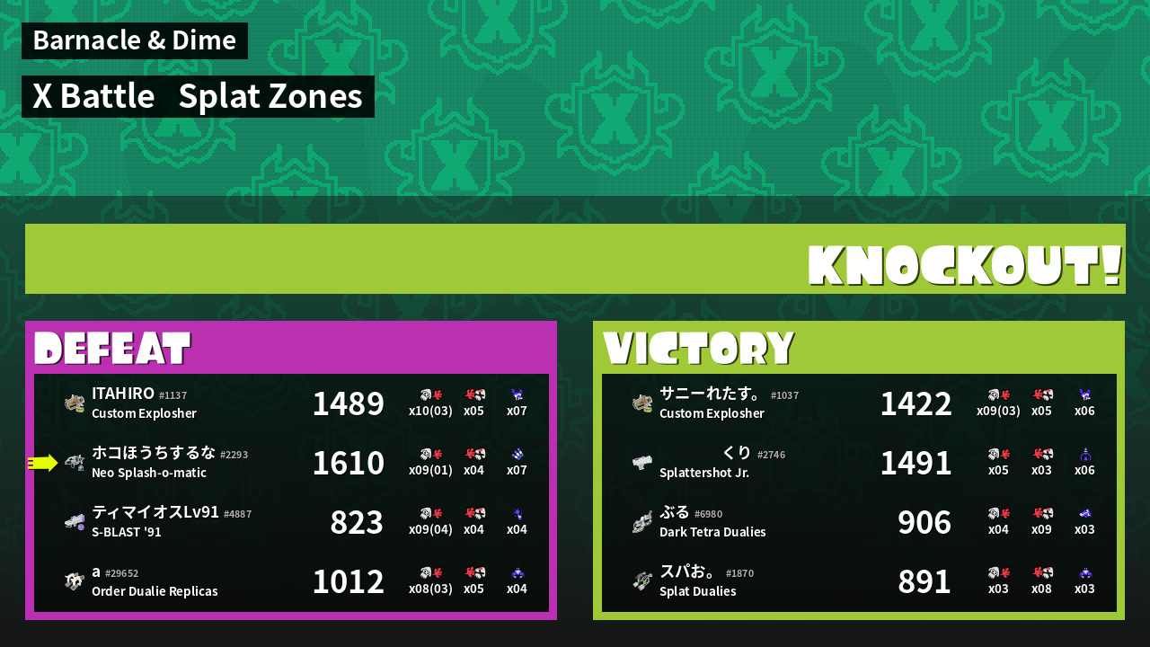 | Mode | Splat Zones - X Battle | ||
