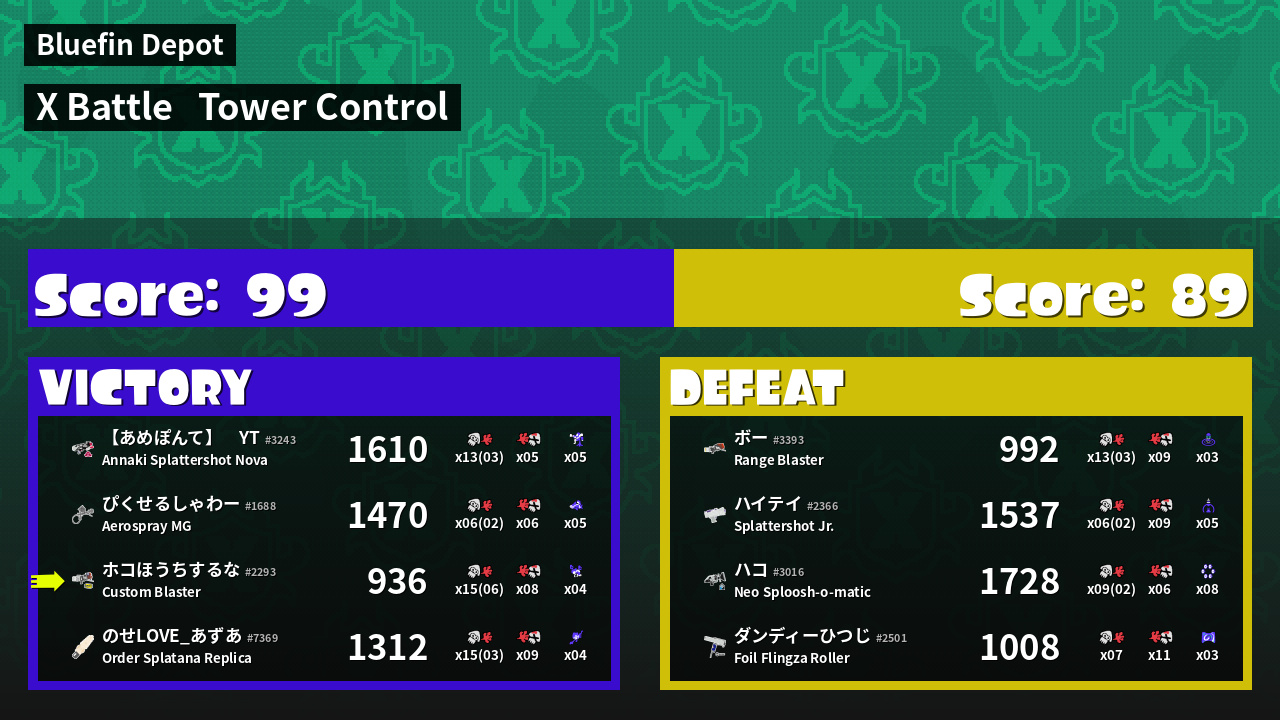 | Medals | #1 Overall Splatter #1 Splat Assister #1 Tower Stopper | ||