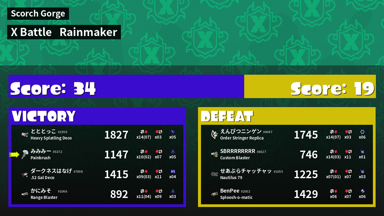 | Medals | #1 Enemy Splatter #1 Damage Taker #1 Ink Consumer | ||