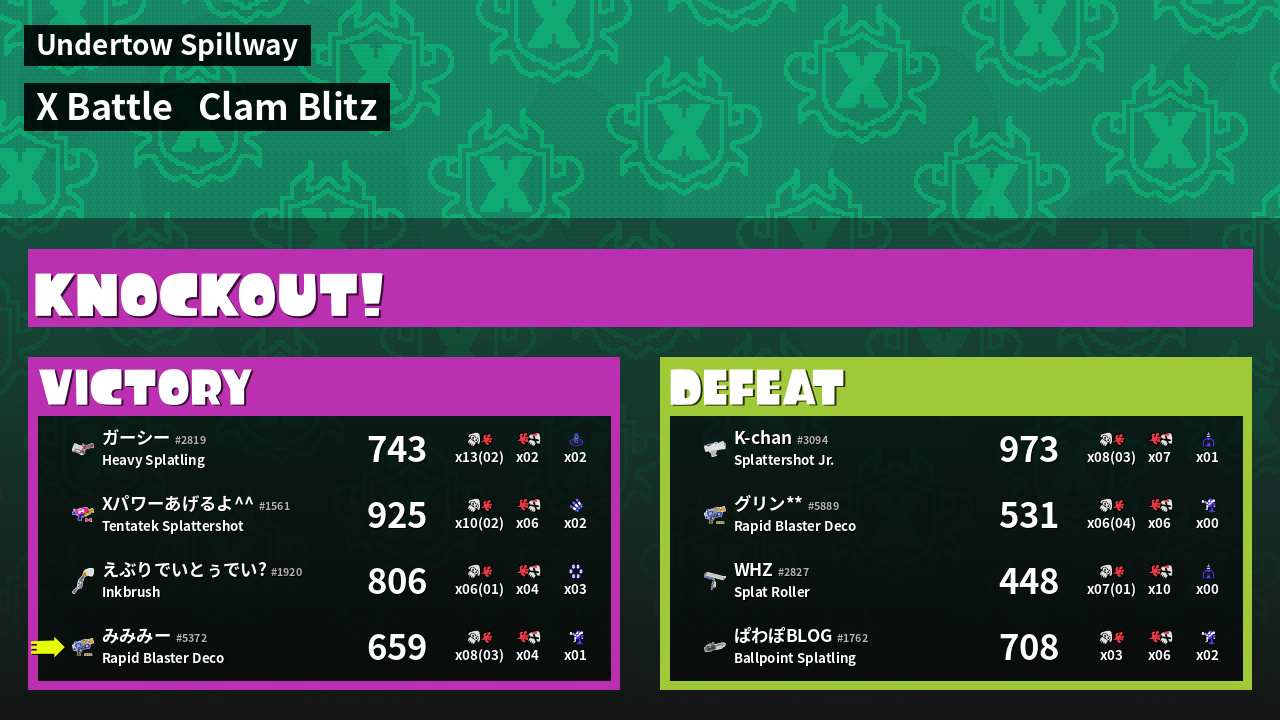 | Mode | Clam Blitz - X Battle | ||