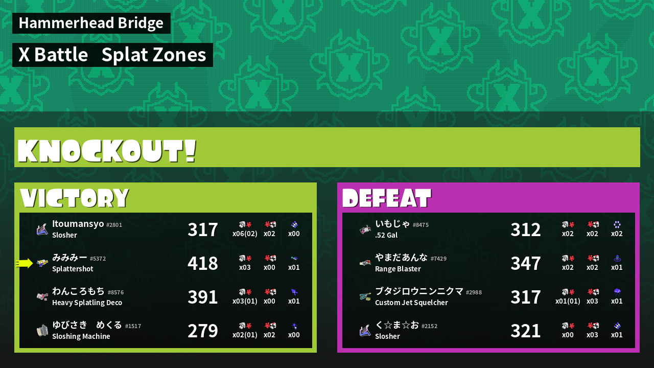 | Mode | Splat Zones - X Battle | ||