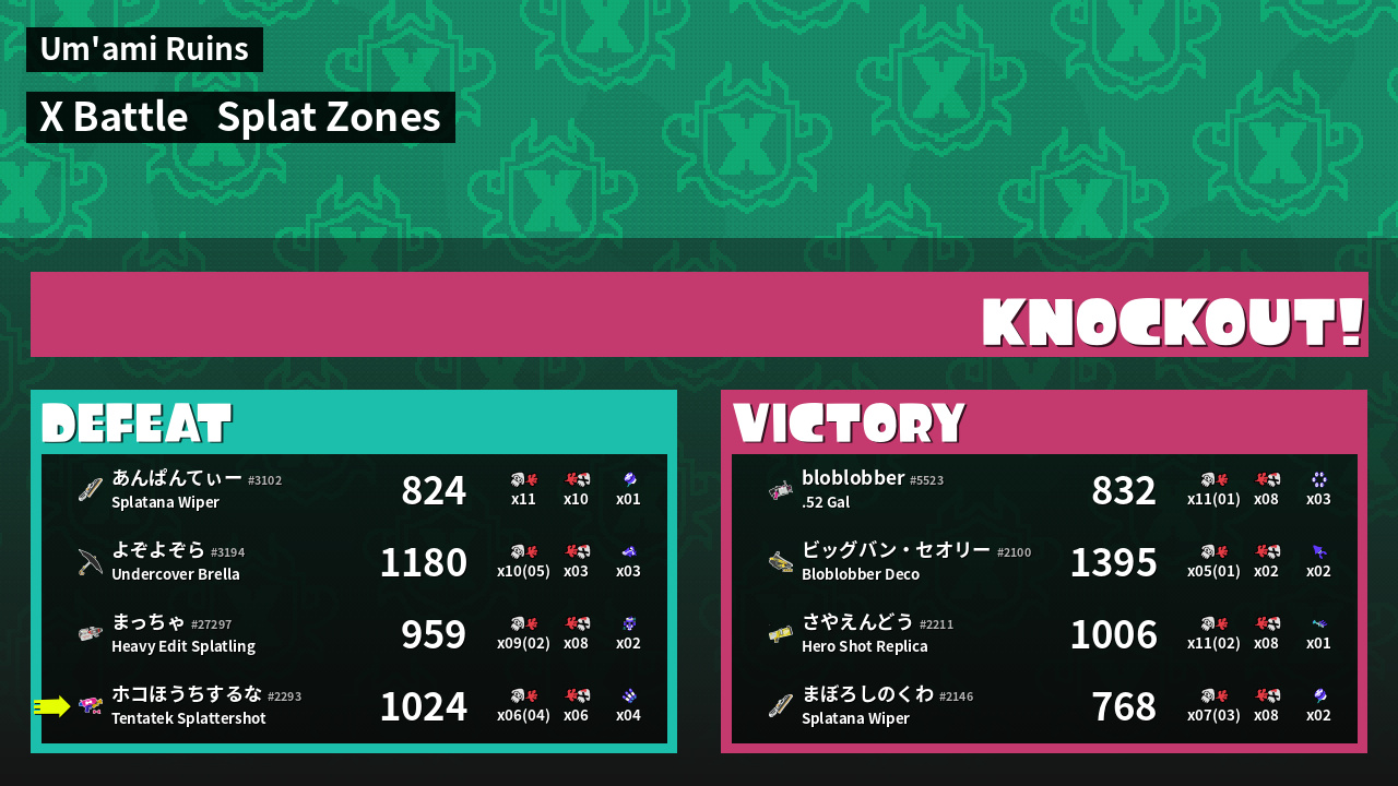 | Medals | #1 Splat Zone Guard #1 Ground Traveler #1 Ink Consumer | ||