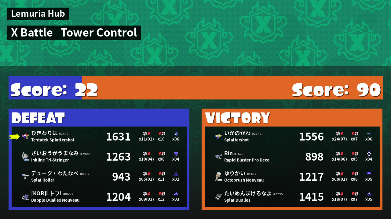 | Mode | Tower Control - X Battle | ||